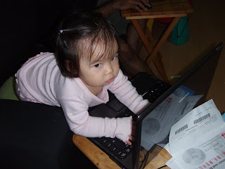"Mommy, I'm trying to type something. Don't disturb me please!"